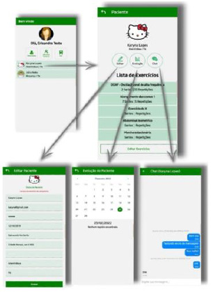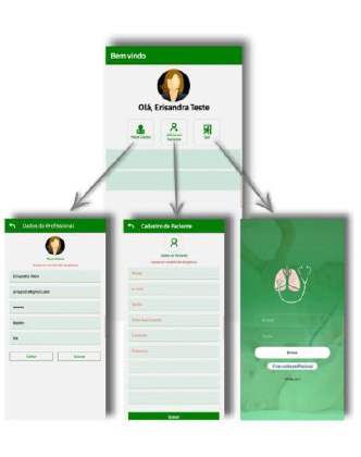 Figura 2 - Telas do aplicativo FisioResp, área do profissional