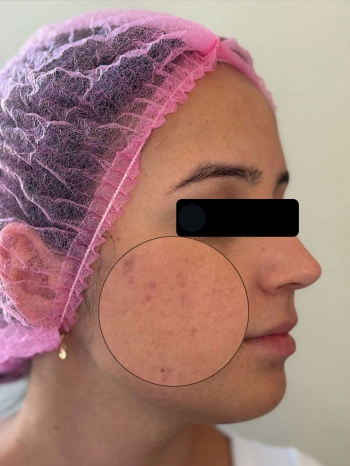 Nas primeiras 24 horas após a primeira sessão, manteve-se hiperemia difusa em toda a face, sem sinais de complicações. Nos dias subsequentes, observou-se regressão progressiva da hiperemia e da ardência. Após cinco dias, a pele apresentou melhora inicial da textura, com aspecto mais hidratado e superfície cutânea mais suave, embora as cicatrizes atróficas se mostrassem temporariamente mais evidentes. Ao décimo dia, esses achados foram mantidos, com pele mais clara e hidratada.
