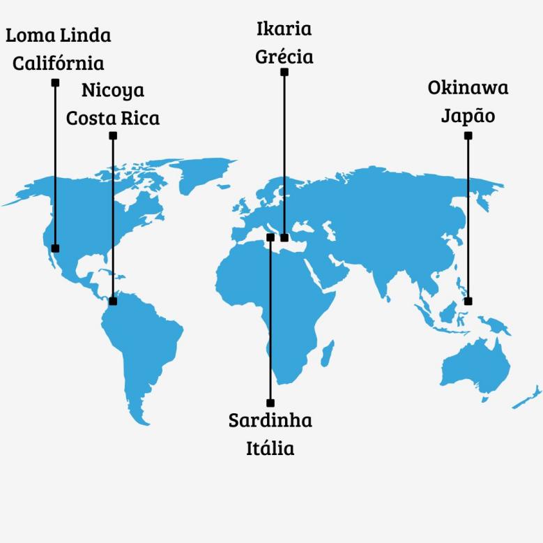 Figura 1 - Distribuição geográfica das Blue Zones ao redor do mundo.