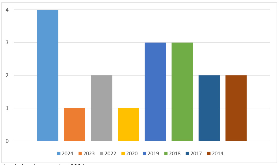 Figura 2 – Distribuição do ano de publicação da mostra. Porto Alegre, RS, Brasil, 2024