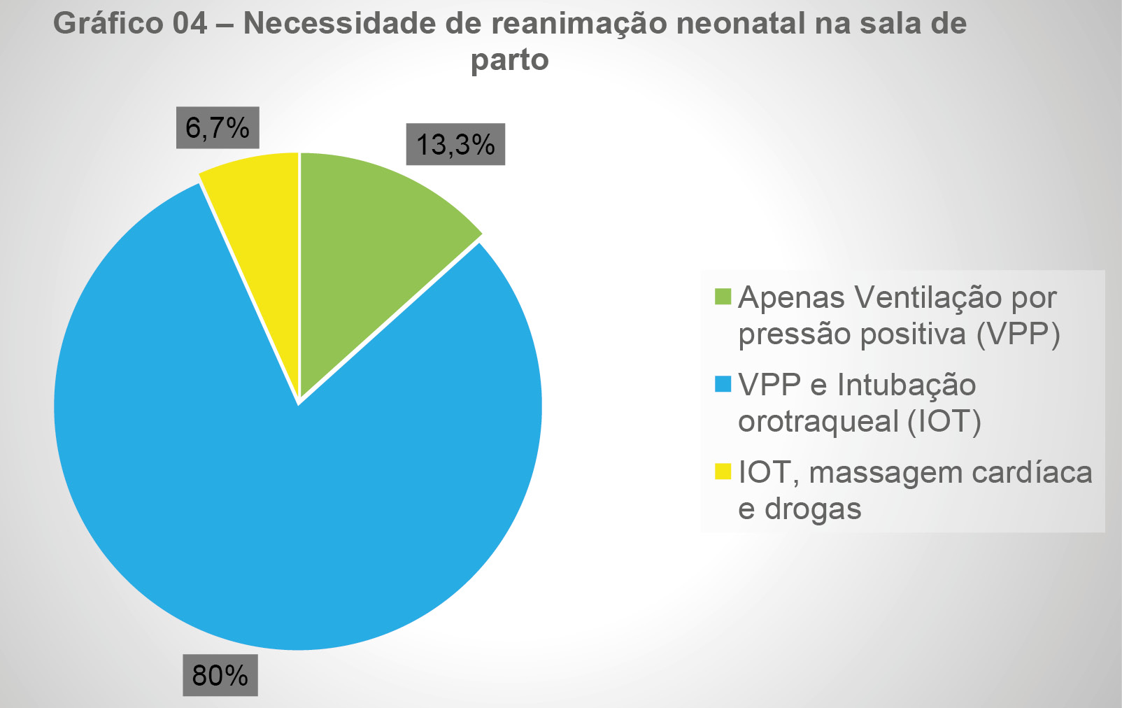 Apesar de não ser possível prever determinados eventos, a ocorrência de APN pode ser evitada se houver assistência pré-natal de qualidade, além de uma assistência adequada ao RN na sala de parto [3,7]. 100% (n=15) dos RNs incluídos no estudo necessitaram de algum tipo de reanimação, 80% de VPP e IOT, e 100% estiveram em VM após o 10º minuto.