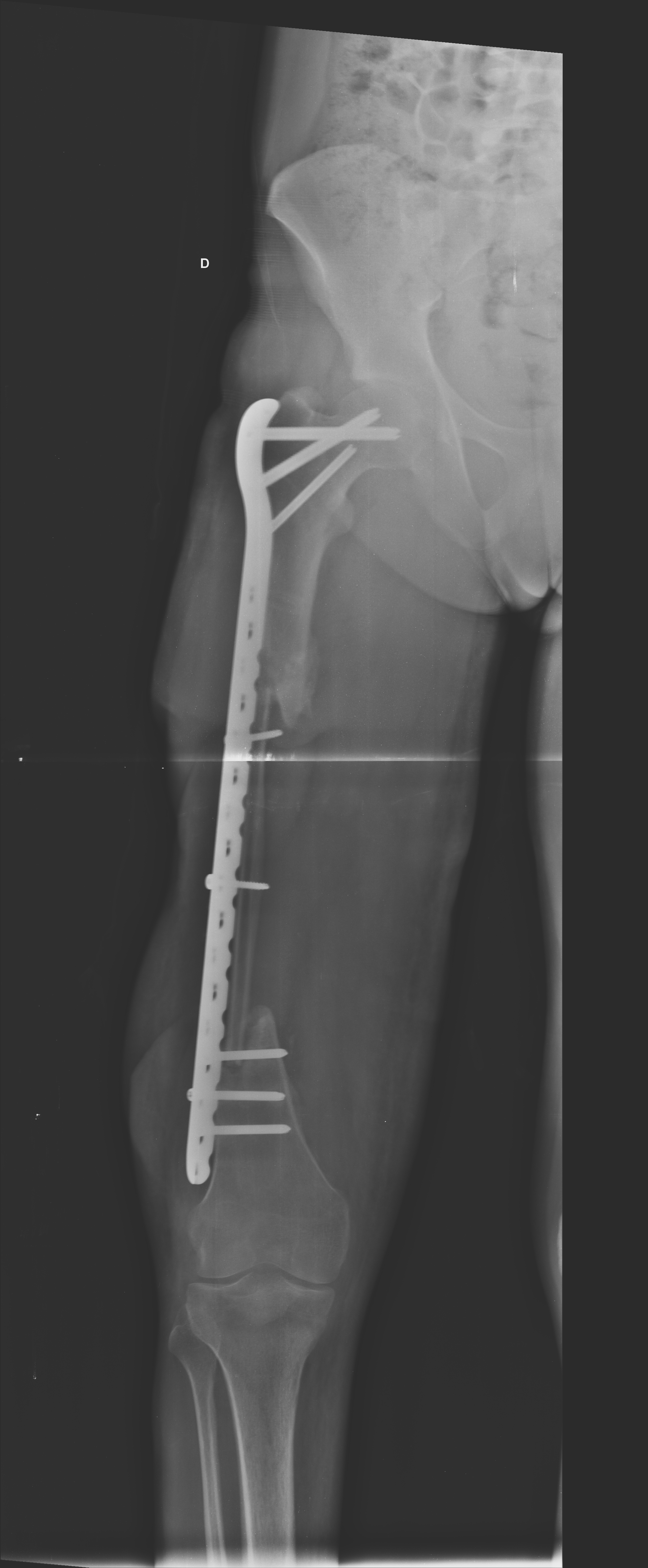 Todos os pacientes deste estudo foram acompanhados pela fisioterapia. No pós-operatório imediato todos foram orientados a manter marcha com meio auxiliar sem carga no membro operado e a carga parcial começou a ser liberada pelo médico quando foram observados sinais de consolidação pela radiografia de controle.