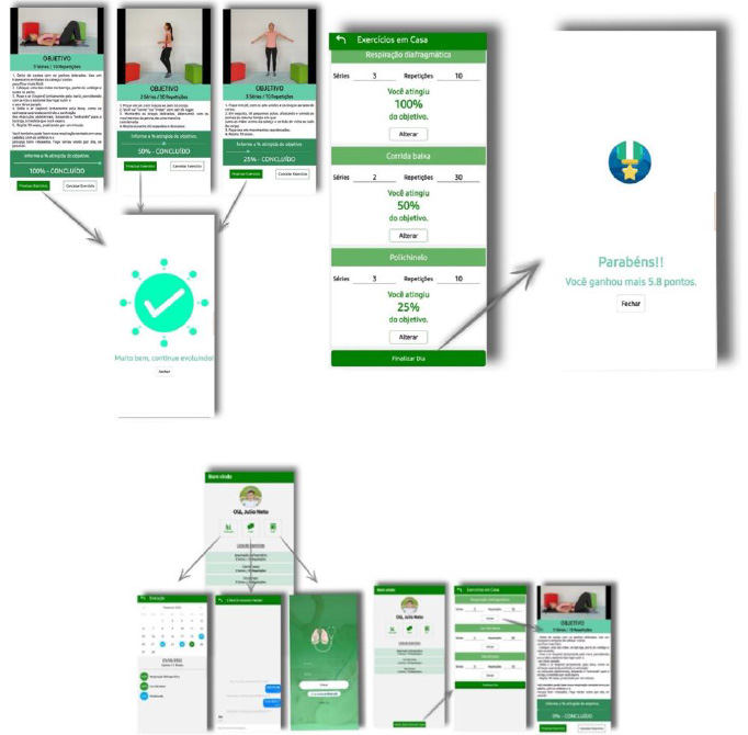 Figura 5 - Telas de do aplicativo FisioResp para acompanhamento dos exercícios pelo paciente
