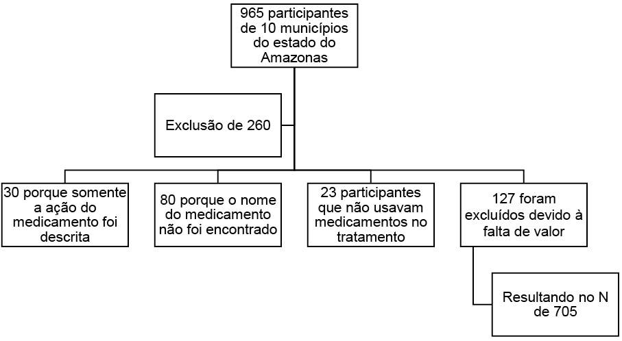 Diante do exposto, torna-se importante identificar as características e os fatores associados ao uso excessivo de medicamentos por esse grupo, a fim de contribuir para a criação de um plano de ação para o uso racional de medicamentos, promovendo consequentemente a melhoria na qualidade de vida dessa população que reside em áreas rurais [8]. Portanto, o objetivo do estudo foi avaliar a prevalência e os fatores associados à polifarmácia em adultos diagnosticados com DM2 no estado do Amazonas.
