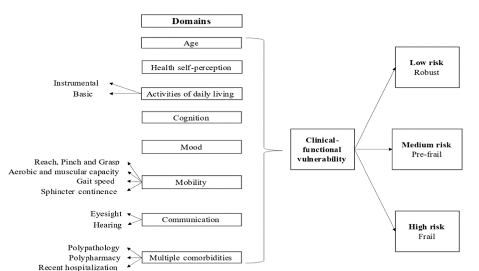 The first step in planning strategies to control and prevent vulnerability in older adults is to carry out a correct functional assessment, allowing for detect risk situations, monitoring functional decline, and identifying areas with greater impairment within the individual assessment of each one and, consequently, identify the need use of specialized services. Knowing the vulnerability of population groups allows us to mobilize personal and physical resources for social transformations, based on intersectoral relationships. Thus, the greater the degree of commitment, resources, scientific quality, monitoring, and management of national, regional, and local social programs for the prevention and care of older people, the greater the chances of directing and optimizing social resources, strengthening the older people in the face of diseases long-term and its consequences.
