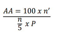 Onde: AA (teor de ácido ascórbico em mg/100 mL ou mg/100 g); n’ - volume de 2,6-diclorofenolindofenol sódio em mL gasto na titulação da amostra; n - volume de 2,6-diclorofenolindofenol sódio em mL gasto na padronização e P - massa da amostra em grama ou volume de amostra usado na titulação [7].